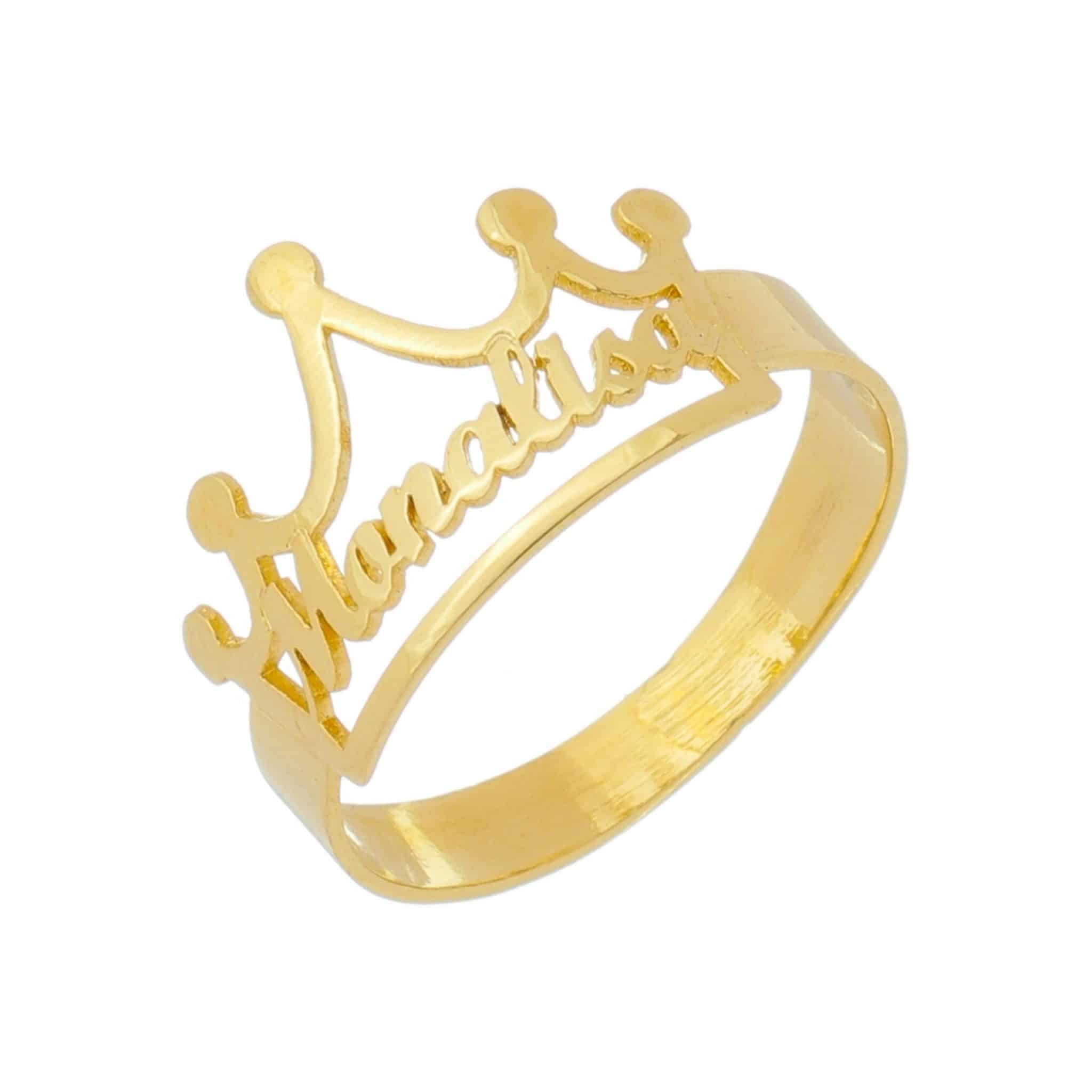 O design em formato de coroa recebe o nome personalizado, transformando o anel em uma peça única, ideal para representar quem é rainha (ou rei) da própria história ou para presentear alguém especial.
