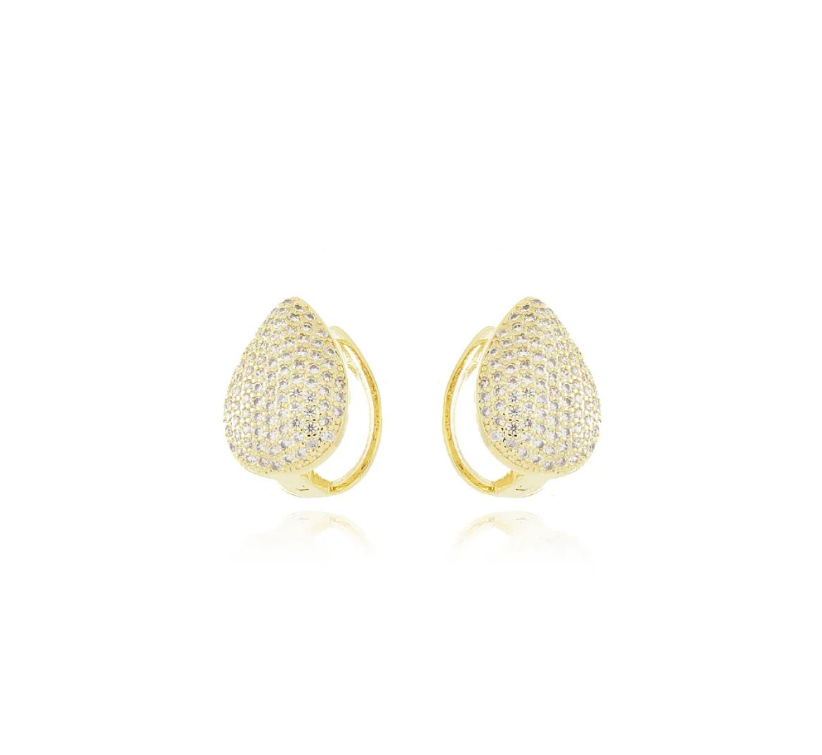 Brinco Argola Articulada Gota Cravejada Zircônia Banhada a Ouro
