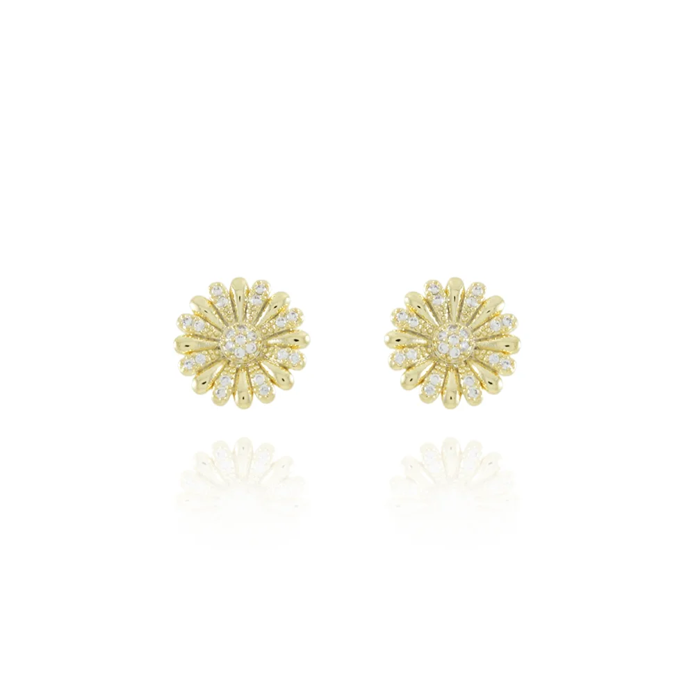 Este lindo brinco DE FLOR CRAVEJADO DE ZIRCÔNIAS CRISTAIS é feito com LATÃO BANHADO A OURO 18K de alta qualidade.