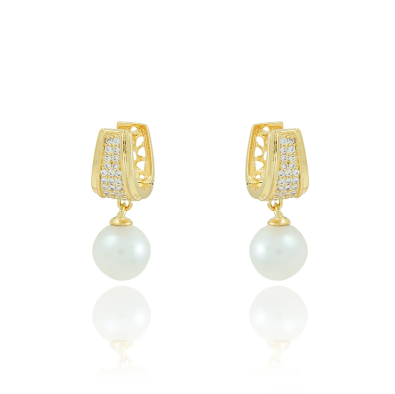 🔸 Design: Argola articulada com fileira de zircônias e pérola lisa pendente