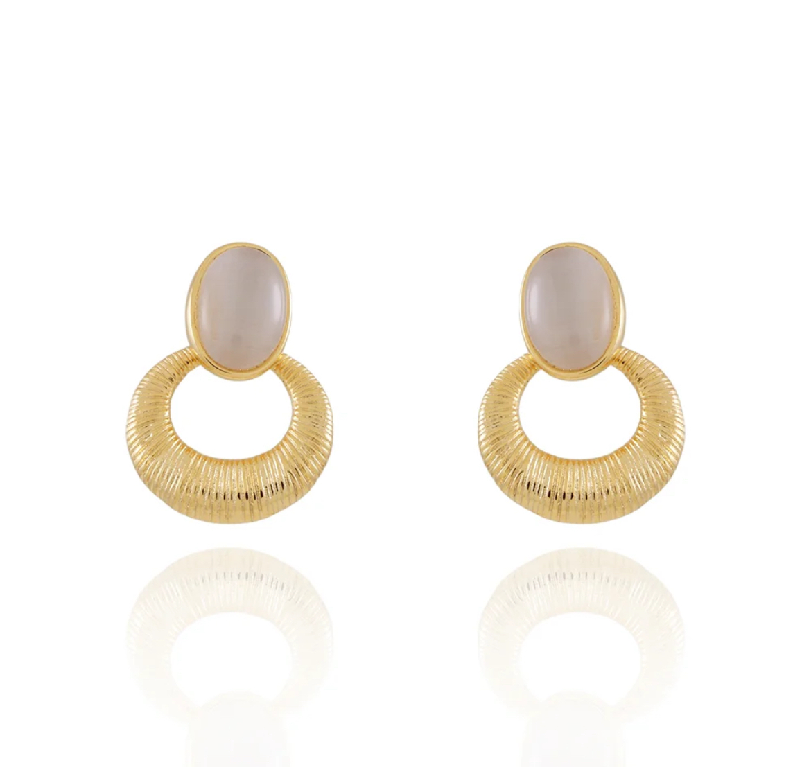Brinco Pêndulo com Madrepérola Branca • Banhado a Ouro 18k