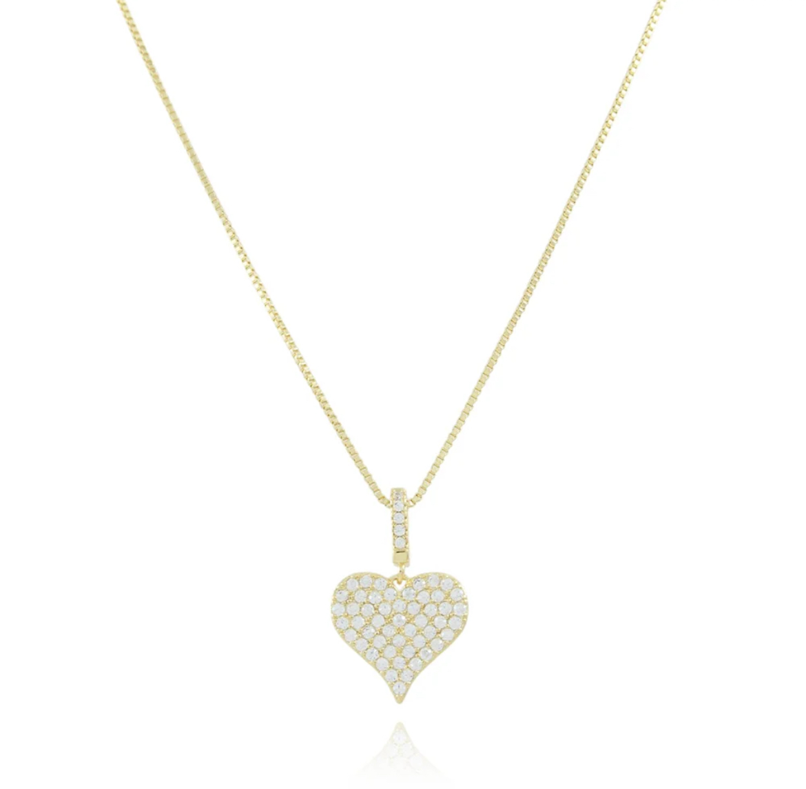 Colar Coração cravejado zircônia • Banhado a Ouro 18k