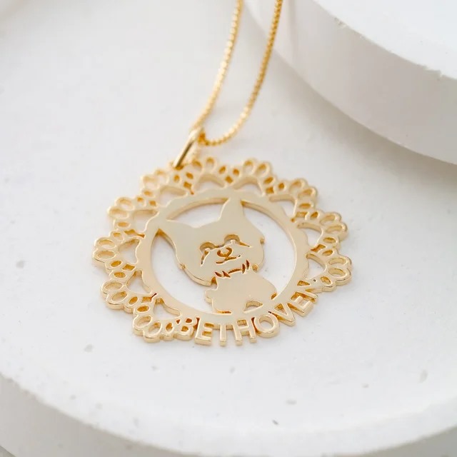 Colar Mandala Cachorro com nome do Pet - Banhado a Ouro 18k