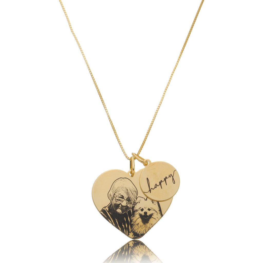 Colar Pingente Coração + Medalha Fotogravação Personalizado • Banhado a Ouro 18k