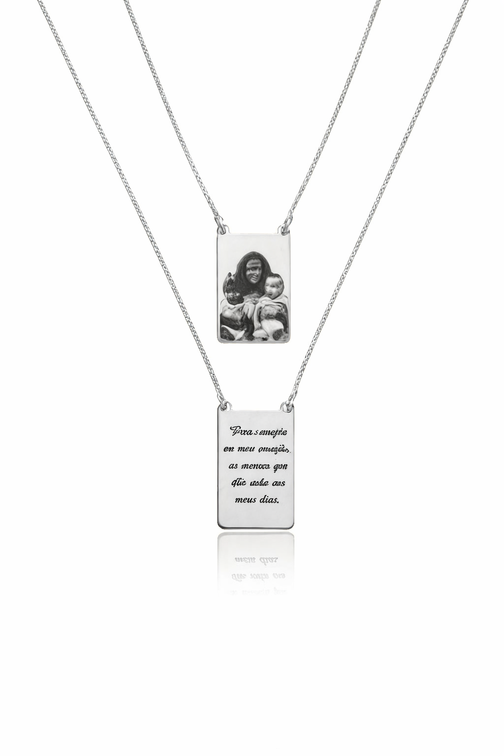 Cada peça é personalizada com a gravação de uma foto especial, transformando lembranças únicas em um acessório atemporal. O design é complementado por um delicado pingente circular, gravado com uma frase inspiradora, tornando o colar ainda mais simbólico e emocionante.