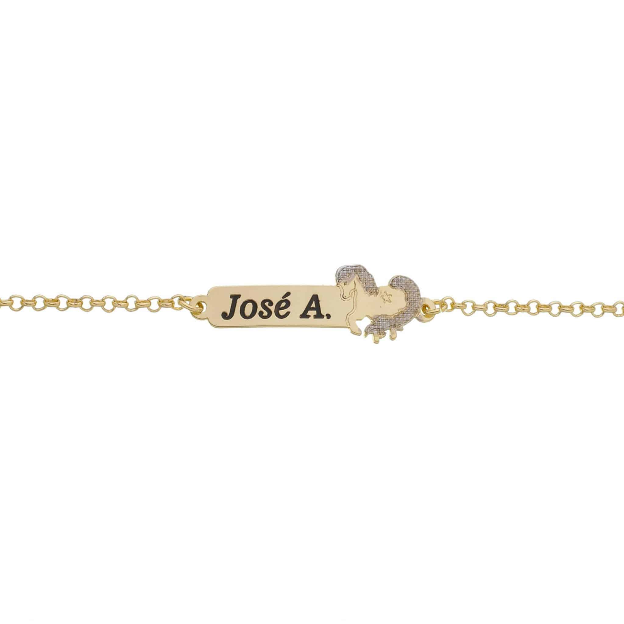 Pulseira Infantil Personalizada com Nome e Cavalo em Ródio
