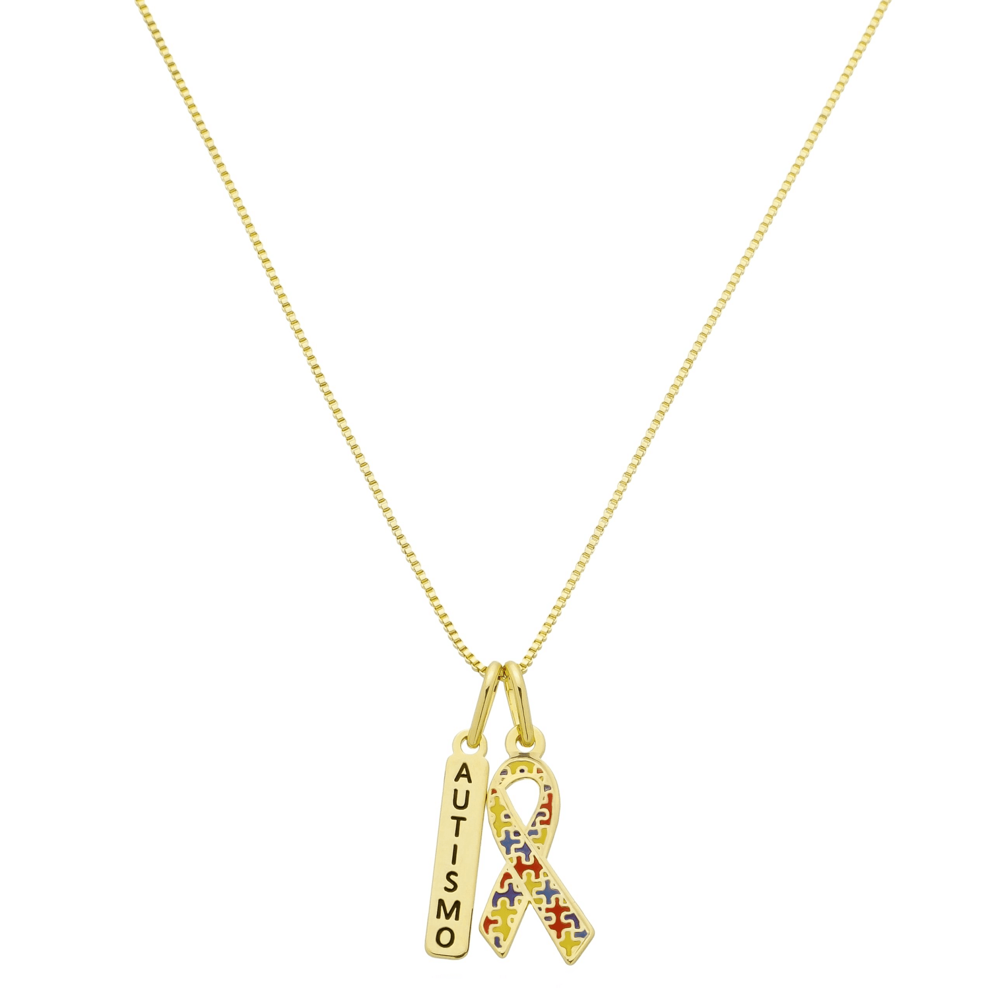 Colar delicado e cheio de significado, desenvolvido para representar amor, conscientização e inclusão. A peça traz o laço do autismo com detalhes coloridos e uma plaquinha personalizada com nome, tornando o acessório único e especial.